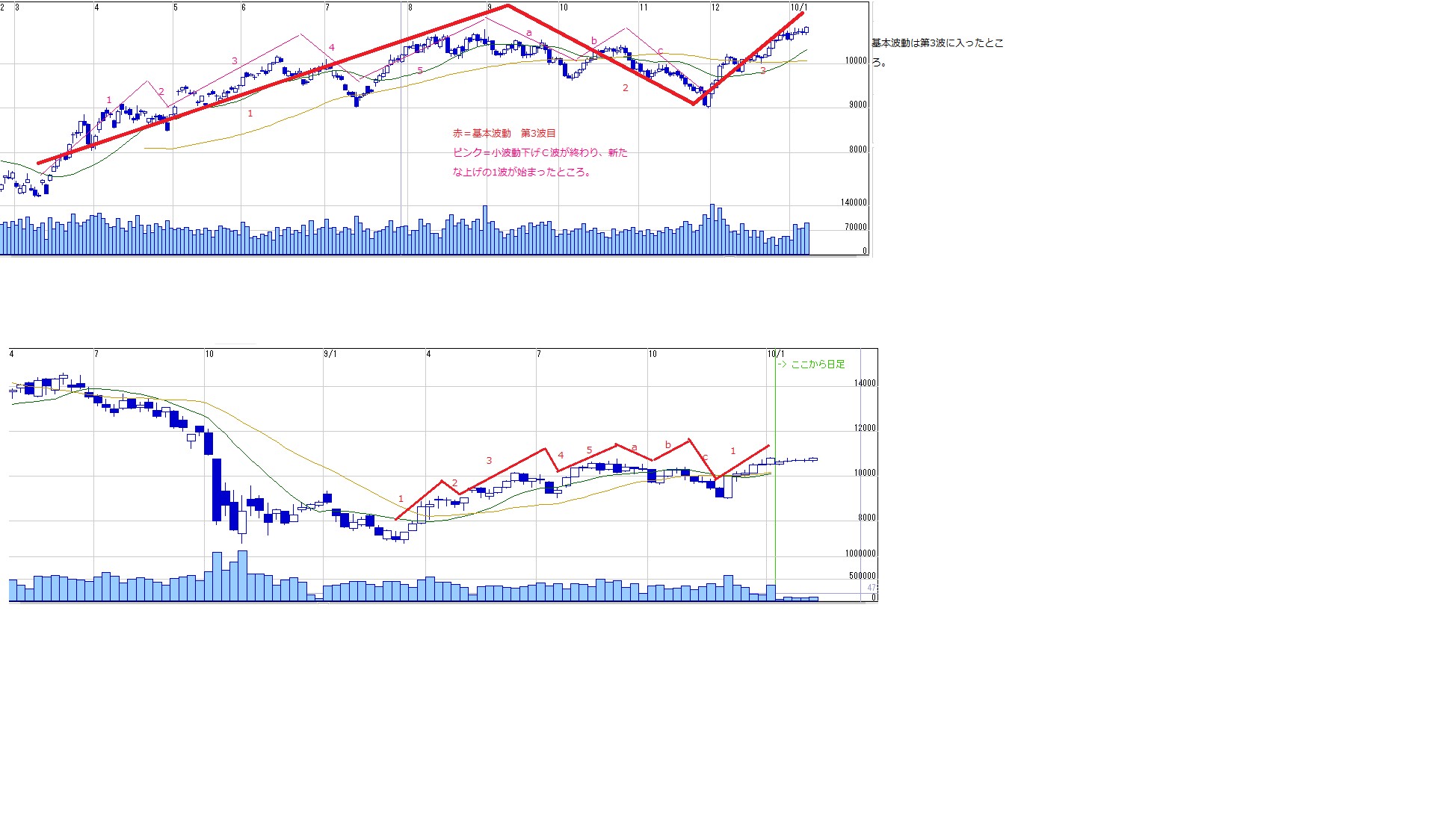 ・小波動下げC波が終わって新たな上げ3波にはいったものと考える。
