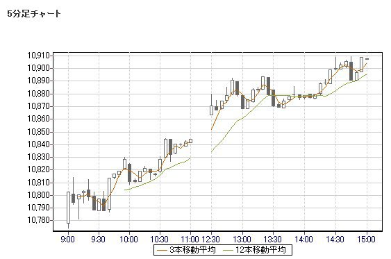 日経平均株価 10,907.68 +172.65 +1.61%