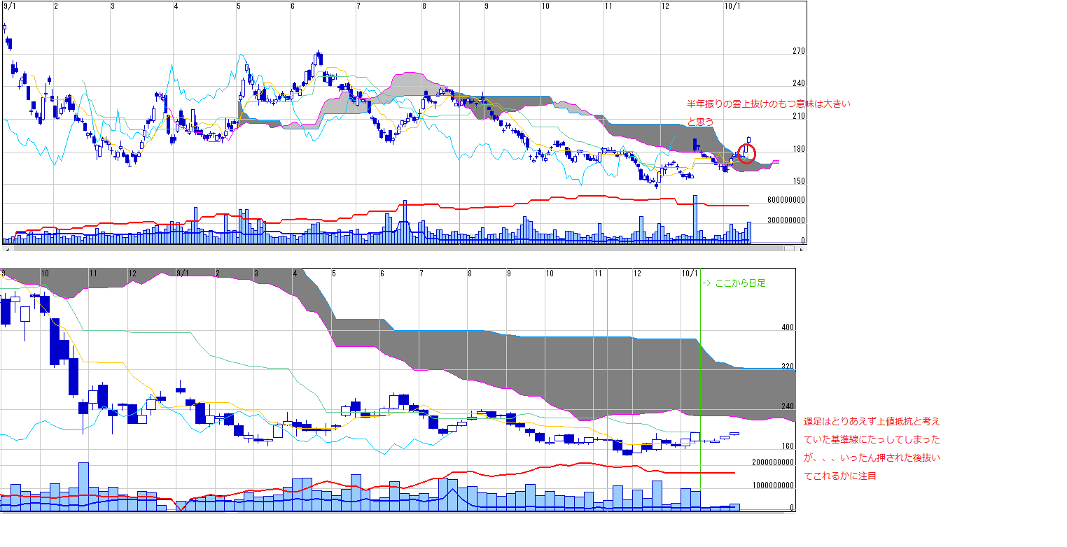 ・UFJは中心線が横ばいだがみずほは中心線が上むいてきたのでボリバンも完全に上離れたといえる。