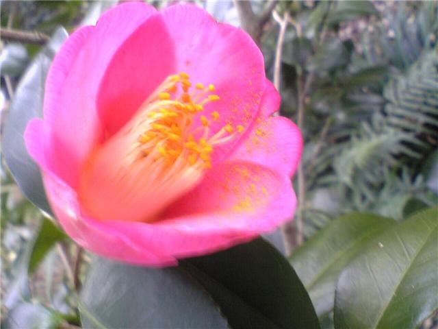 この時期、山を歩いて、赤い椿を見つけると、ドッキリします。