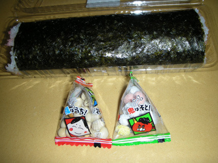 大将の言う通り、自分の顔にでも豆まきして恵方巻きでも