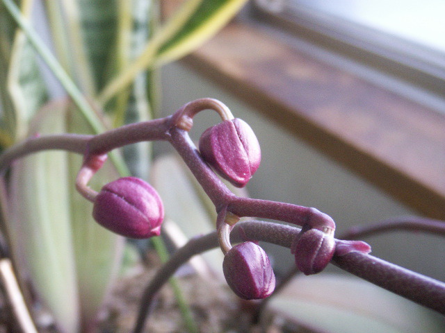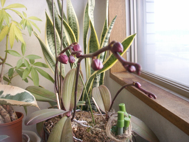 窓際の胡蝶蘭のつぼみが膨らんできました