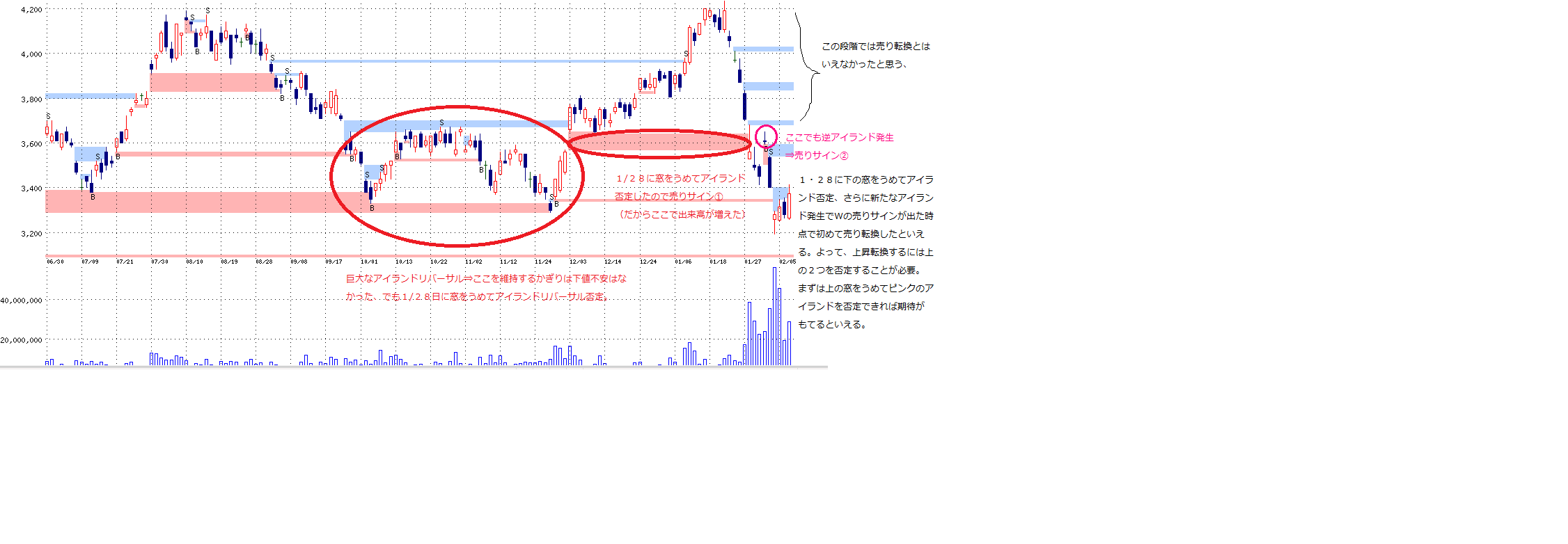 ・トヨタは窓も多いけど、アイランドリバーサル出現も多い。アイランドが相場の転換点を決めるキーポイントかな~。