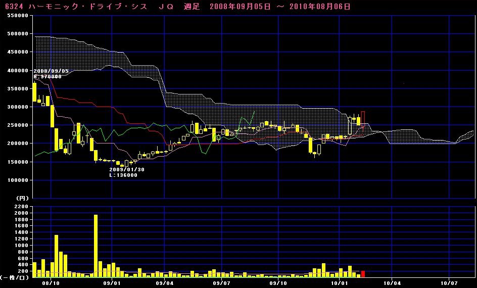 週足雲がピアノの形で、ローソク足が鍵盤のようです!