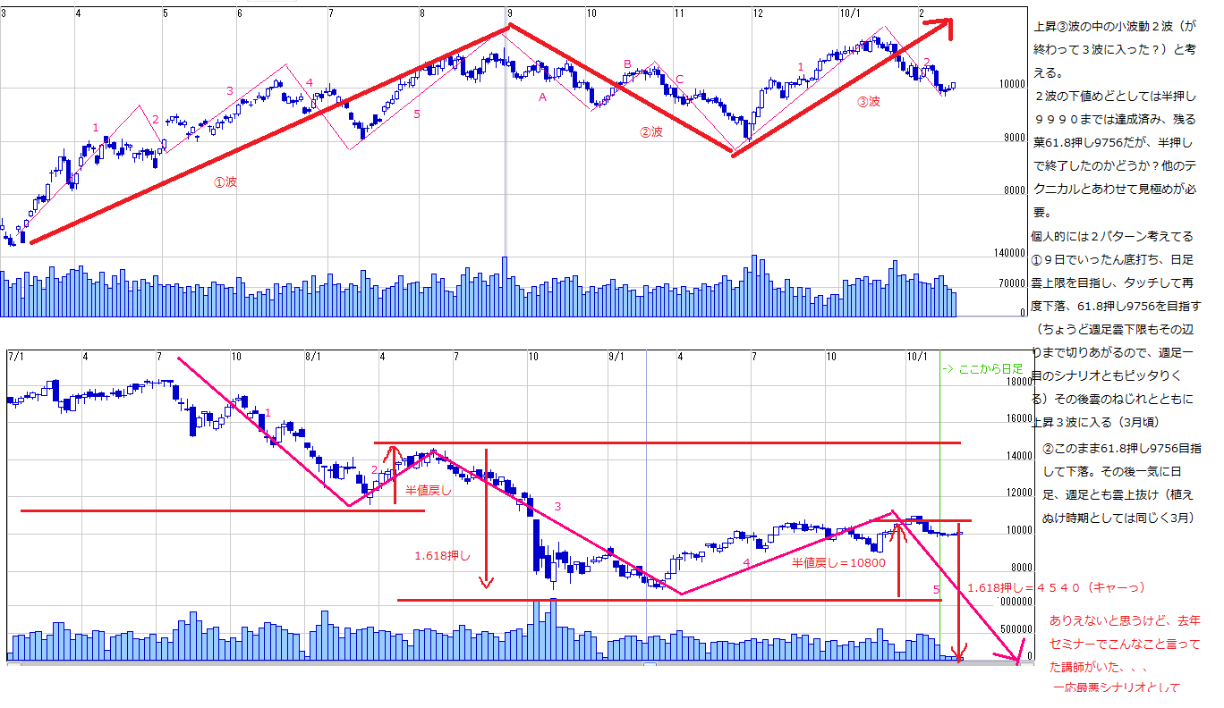 ②このまま9756まで下落したのち3月にかけて一気に雲を植えぬく