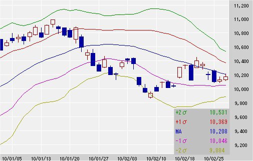 25日移動平均線 10,208↓