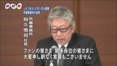 人気ロックバンドJAYWALKのボーカル、中村耕一容疑者が逮捕されたことを受けて、9日夜、所属事務所の社長らが記者会見し、謝罪しました。