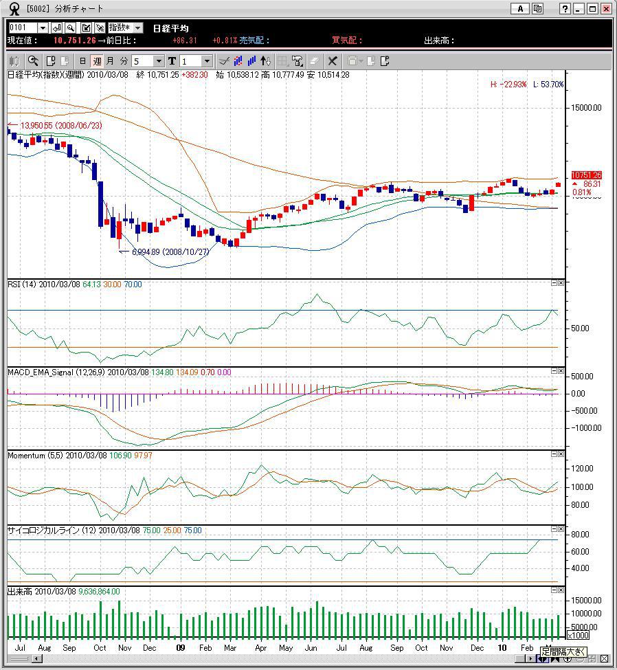 【解説!?】[日経平均 10,751.26(10,368.95)]()は一週間前