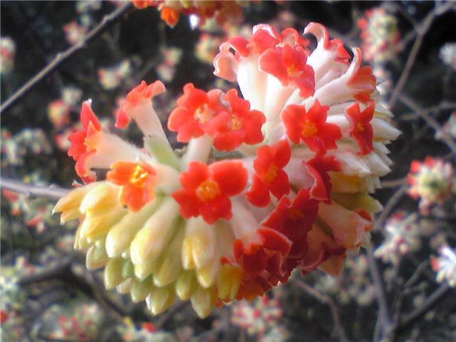 こうぞ、みつまたが紙の原料になるってことを昔社会(だったと思います)で勉強しましたが、こんなかわいらしい花が咲くんですね。