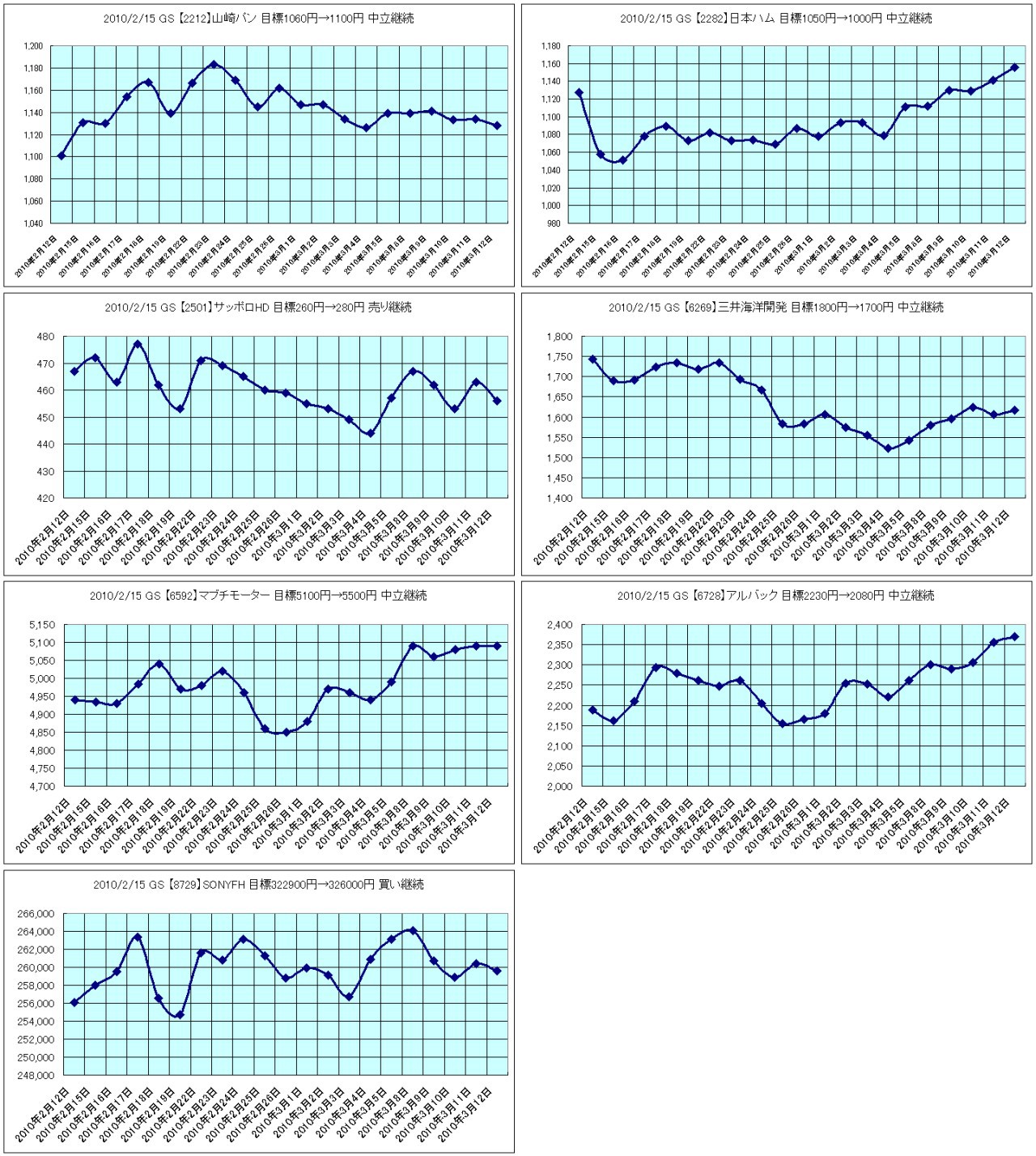 2010/2/15 GS 【2501】サッポロHD 目標260円→280円 売り継続