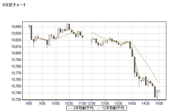 日経平均株価 10,744.03 -102.95 -0.95%