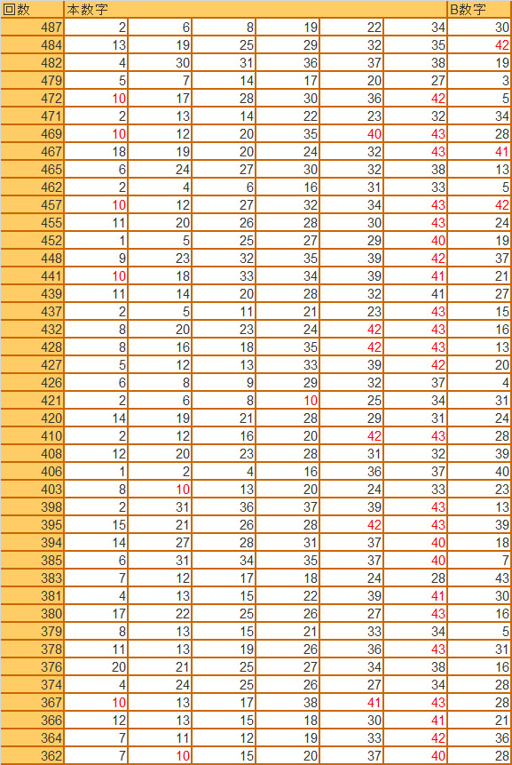 暇つぶしにエクセルでロト6の分析をしてました。^^