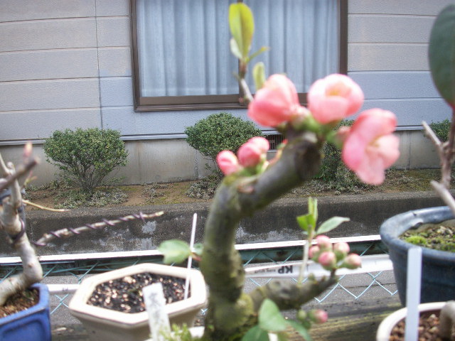 我が家の盆栽のぼけも綺麗な花を咲かせています[1:007]