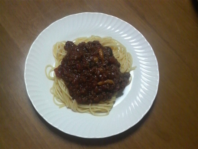 >毎度の料理で恐縮ながら、スパゲッティ・ミートソースの画像でもとりあえずアップしておきまする。