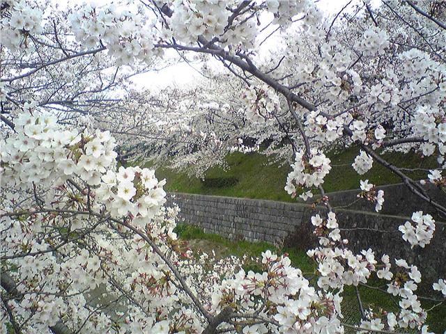 はな、 山崎川 、花見:石川橋と新瑞橋の間の山崎川はさくらの名所に選ばれていますが、特にかなめ橋付近が綺麗です。駐車場は瑞穂公園の地下に止めていきました。警察の車が巡回し、路上駐車は難しいです。公共の施設に止めていく手もあります。さくら吹雪の舞うときもあり、満開でした。やきイモの屋台が沢山出ていました。