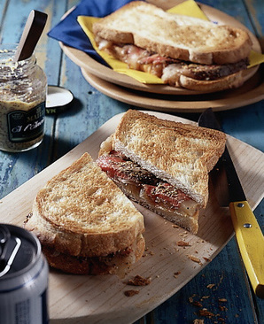 ピリリとこしょうを利かせたビーフがぜいたくな、甘い玉ねぎとしょうゆの香りがたまらないサンドイッチ。ボリュームも満点です。 ← ということである