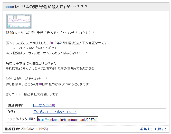 先日の日記で、悪材料が出て、売り予想が最大に・・・・と書きましたが、