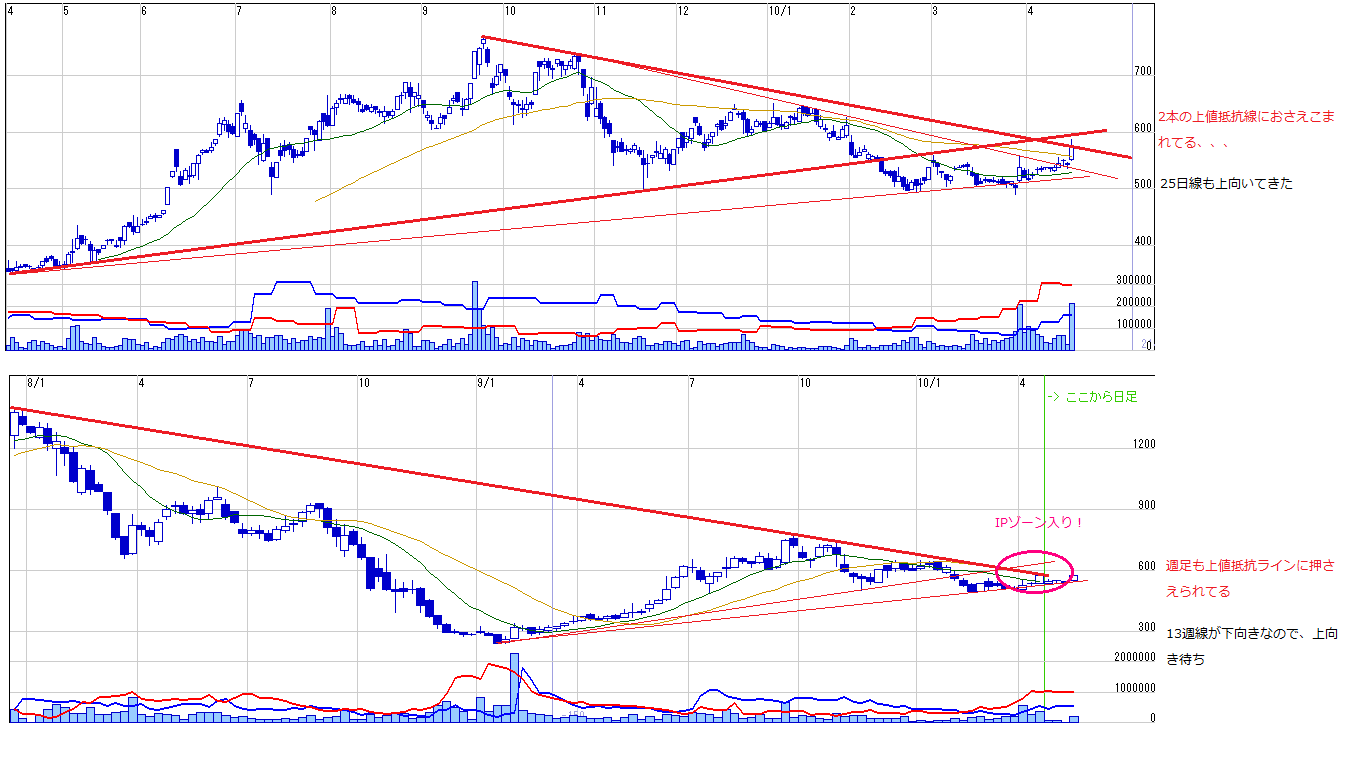 スクリーニングだと、いつもいい銘柄がひっかからないので、チャートからさがしてます^^