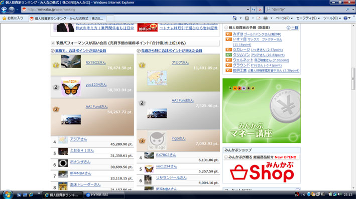 >みんかぶで会員ページの会員ランキングの1.2.3位の幅がバラバラになります。