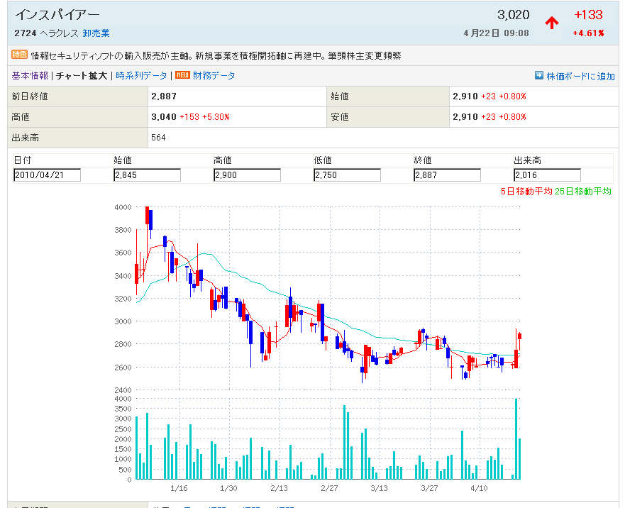 2724:インスパイアーに関して今日の引けでの私の判断は買いですが、朝からデイトレしてました