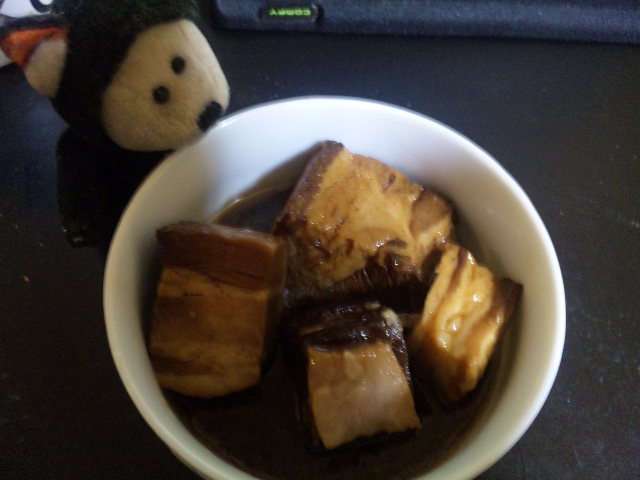 「豚の角煮」を突き、フルーツ酒をのみつつ (* ̄ω ̄)_凸