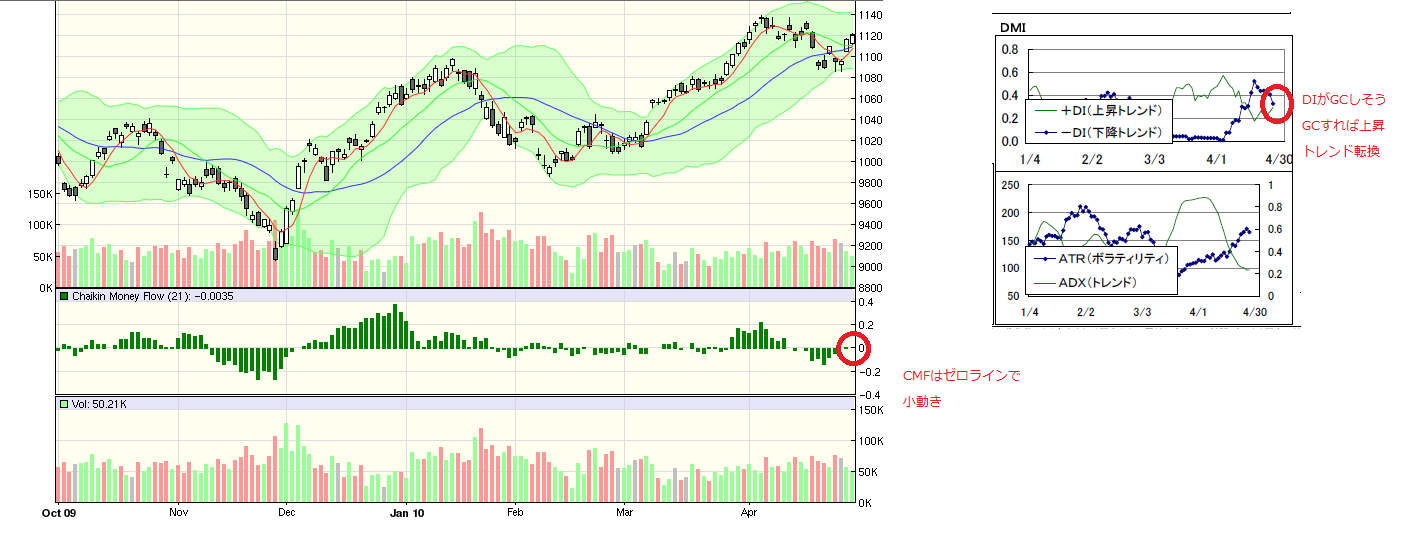 明日くらいに+DIが-DIを抜いても、まだ保ち合いの範囲という感じがします。