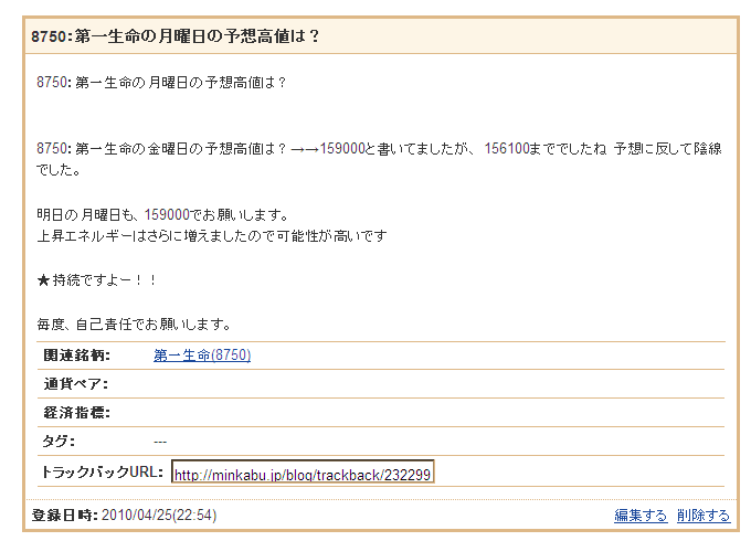8750:第一生命の月曜日の予想高値は?→→159000と書いてましたが、 158700まででしたね