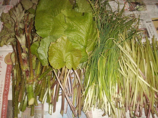 フキもノビルも採りごろです