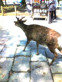 そのあとシカにシカせんべをあげたのですが、母がせんべをあげようとしてシカにがぶがぶ噛まれ、キャーキャーわめいていました。今日奈良公園にいた人は見てしまったかもしれません(^_^;)