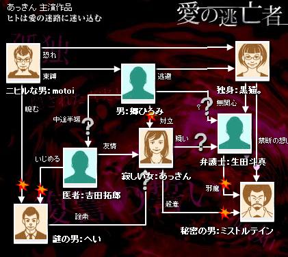 相関図は、相関図ジェネレーターというところが、本家なのですが(たぶん)、TUSTAYAで、相関図ジェネレーターというのができていました。