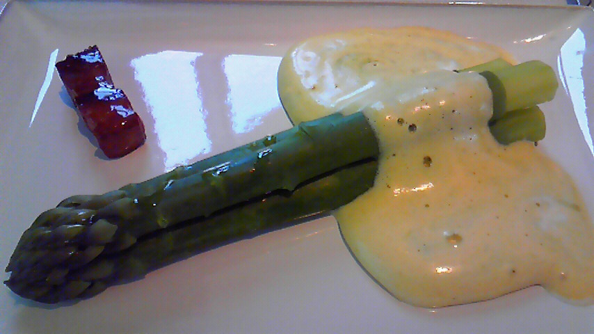 このソースがふんわりカプチーノのような感じですが、何といってもこんなに立派なアスパラガスを見たことがない!!というほど立派なアスパラガスです。
