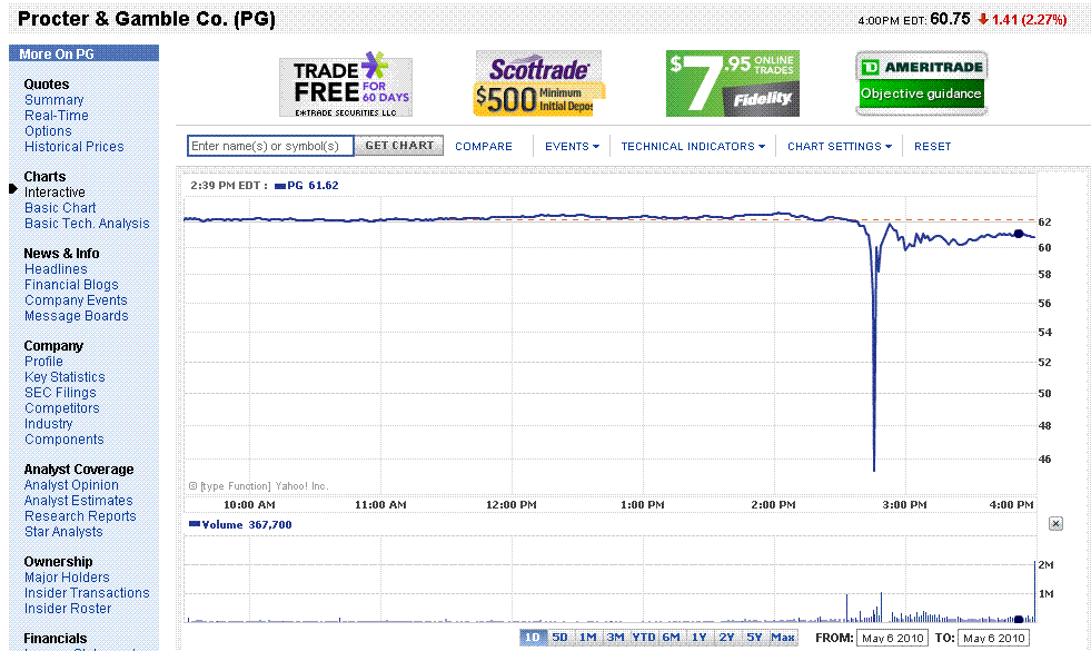 あまりに衝撃的だったので、その時の画像と、誤発注?によるP&Gのチャートを載せておきます。