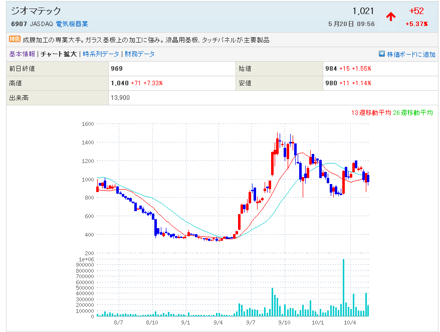 6907:ジオマテックが週足でGC発生となってます