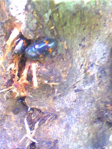 クワガタのお友達のヨツボシケシキスイが今年も出てきました。この種がいることで、蜜酒場が大きくなり、ヒラタクワガタやコクワガタが入るような穴が開いてしまいます。これや、かみきりむしがいてくれるので、カブトムシも蜜にありつけます。ここにくればもう直ぐかぶとやクワガタが来そうです。昼のうちにこうゆう場所を見つけておくと、夜間採集に大物がゲットできます。場所は内緒です。