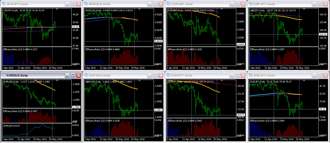 日足のチャートを見ると、効率レシオは総売りで変わらないのですが