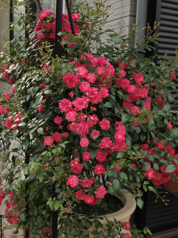 日曜に庭で咲いていたバラとフランネルフラワーです