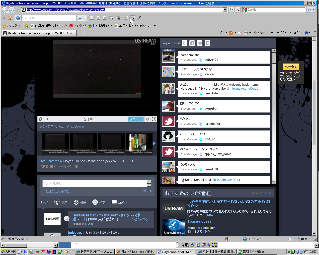 http://www.ustream.tv/channel/hayabusa-back-to-the-earth