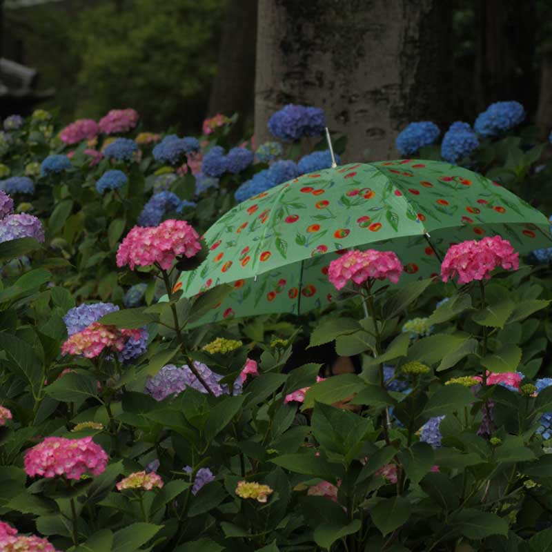 雨傘も紫陽花に似合います。