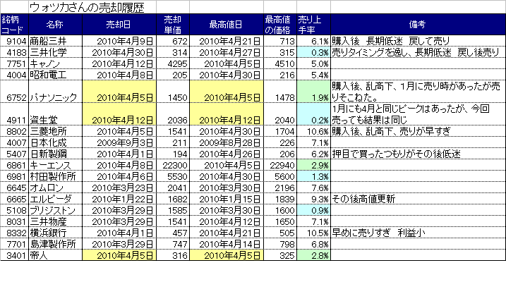パナソニック、資生堂、帝人は最高値日に売却しました。(たまたまです。)