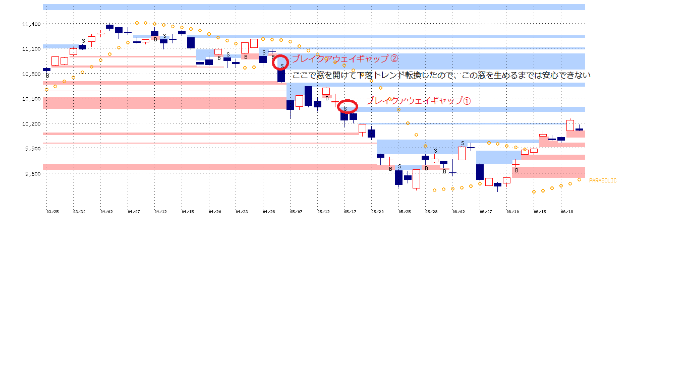 上に2つのブレイクアウェイギャップを残してるので、この2つをうめないと安心感がでない