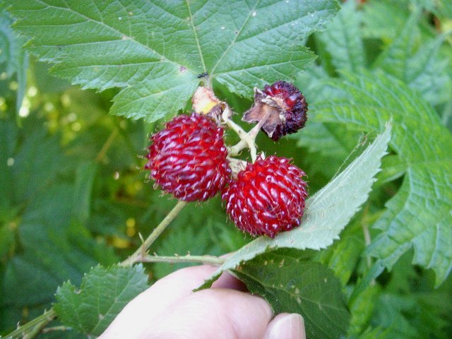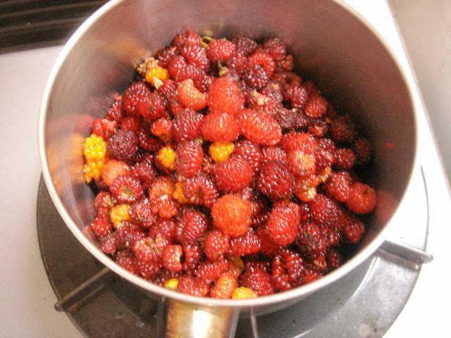 今日も、ルビー色に輝くクマイチゴがいっぱい収穫でしました