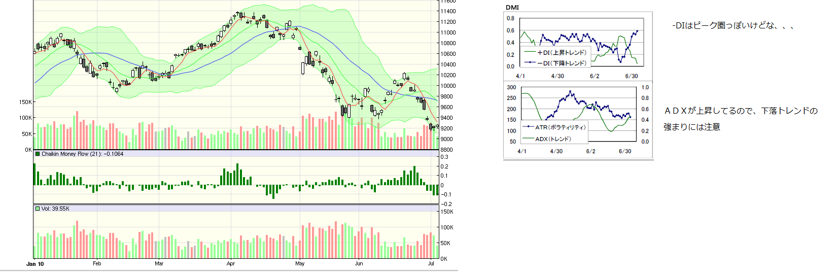 ADXが上昇しているのは、下落トレンドが強まってきたとを示すものですね。