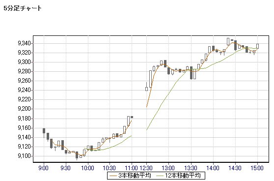 日経平均株価 9,338.04 +71.26 +0.77%