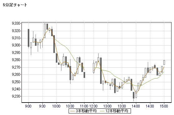 日経平均株価 9,279.65 -58.39 -0.63%