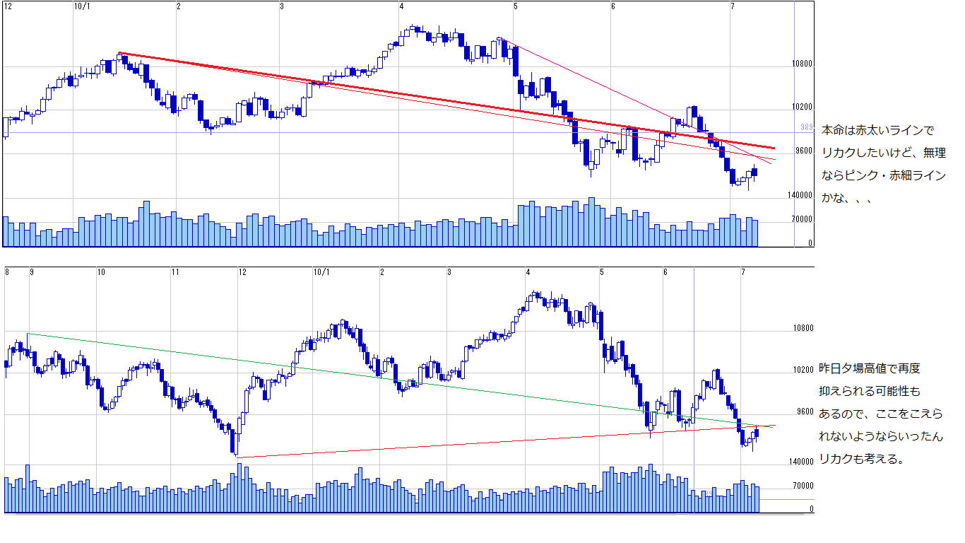 ・MPのターゲット 9650、週足トレンドラインもちょうどこのあたり