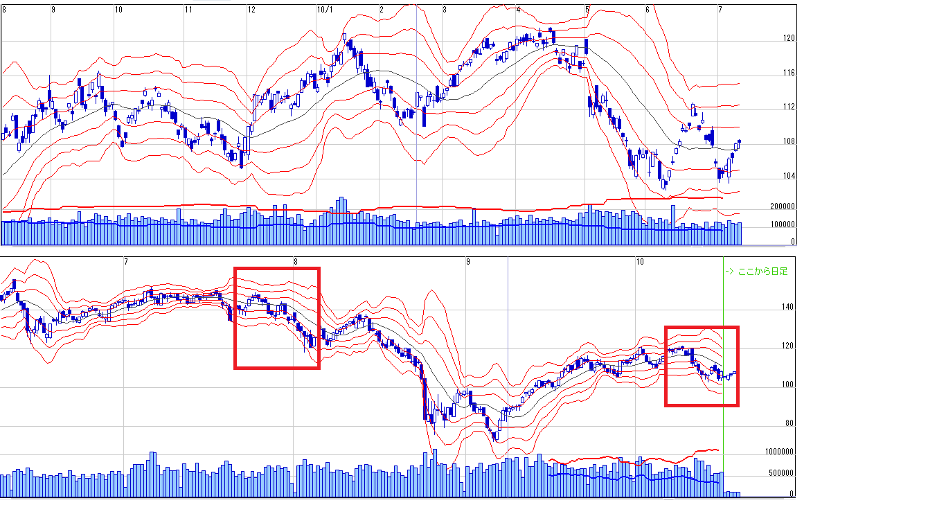 ・最近は円建てチャートで上値めどに達していなくても、ドル建て日経で達成感でれば下落、、、ということが多かったので、念のため。