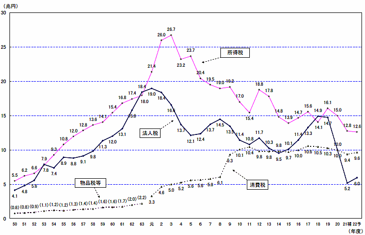 一方消費税は、税率による影響が強く比較的安定した収入がある。