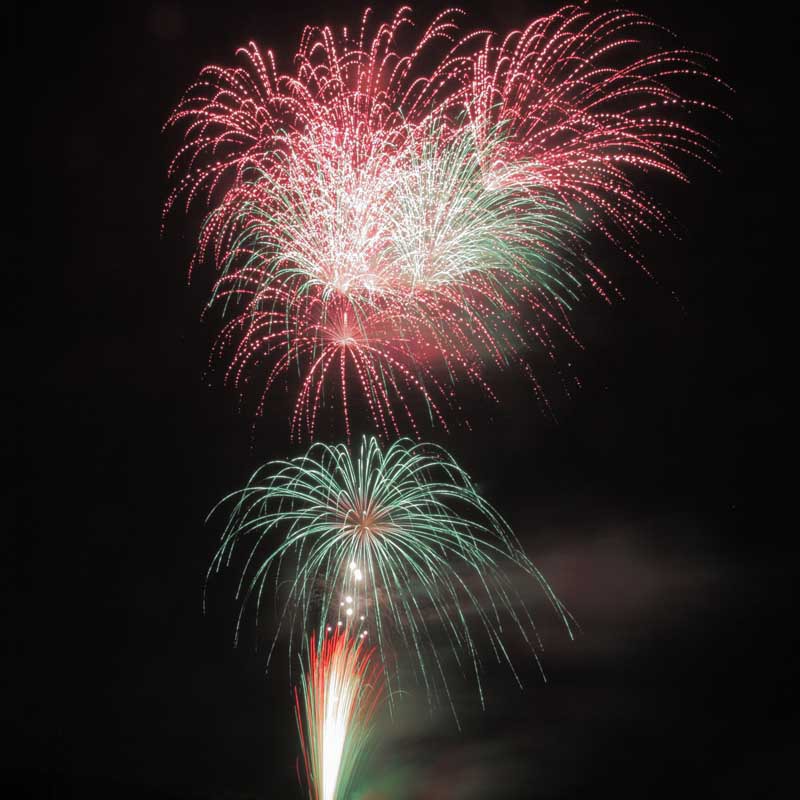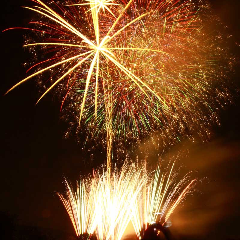 対岸からの打上げですが大型の花火が開く時は 地響きがします。