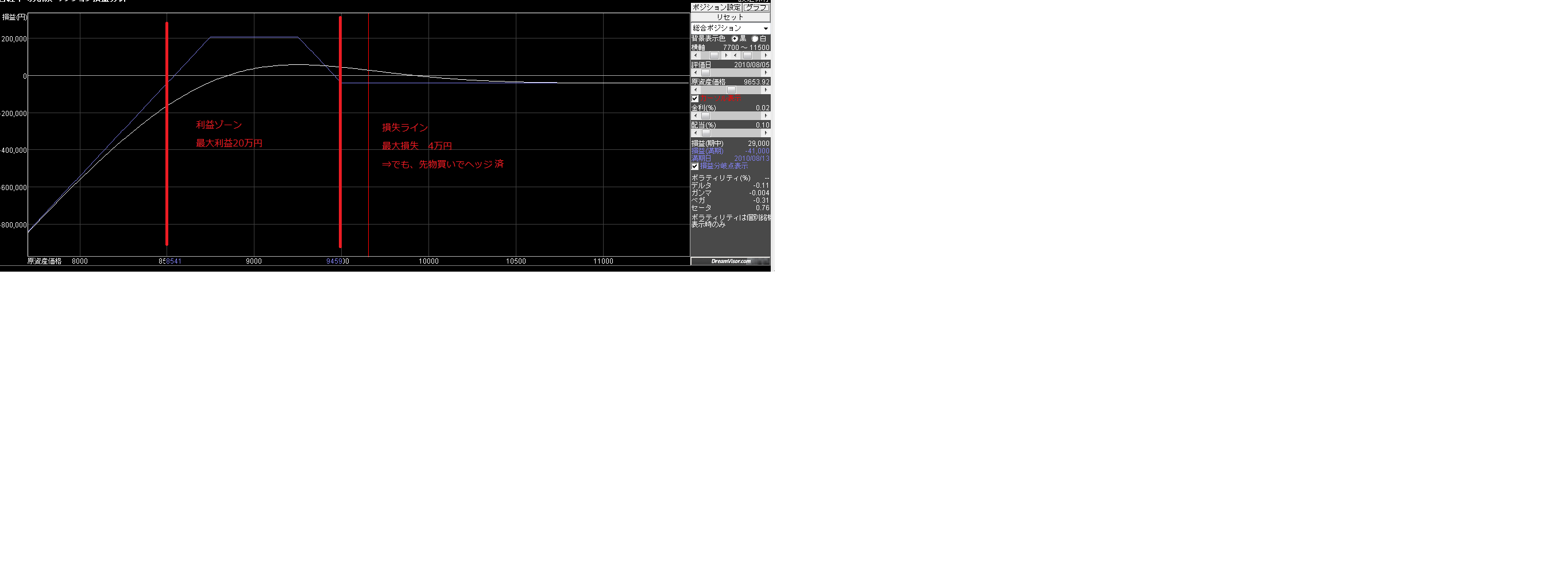 損益ライン 8540~9460で下への備えはばっちりです☆