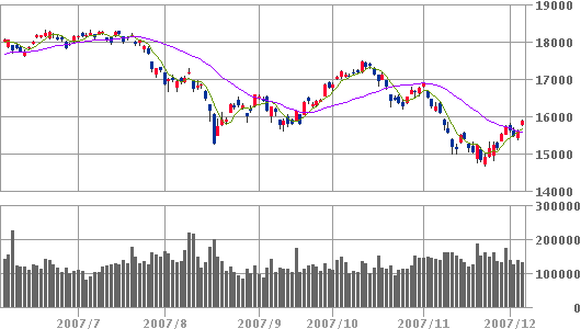 サブプライムローン問題解決への期待が高まり市場のセンチメントがいったん改善している。堅調な米経済指標を好感した米株高と円安進行も背景に買いが優勢な展開となった。銀行株やノンバンク、証券など金融セクターが信用不安の後退により高い。円安を背景にハイテク株も買われた。